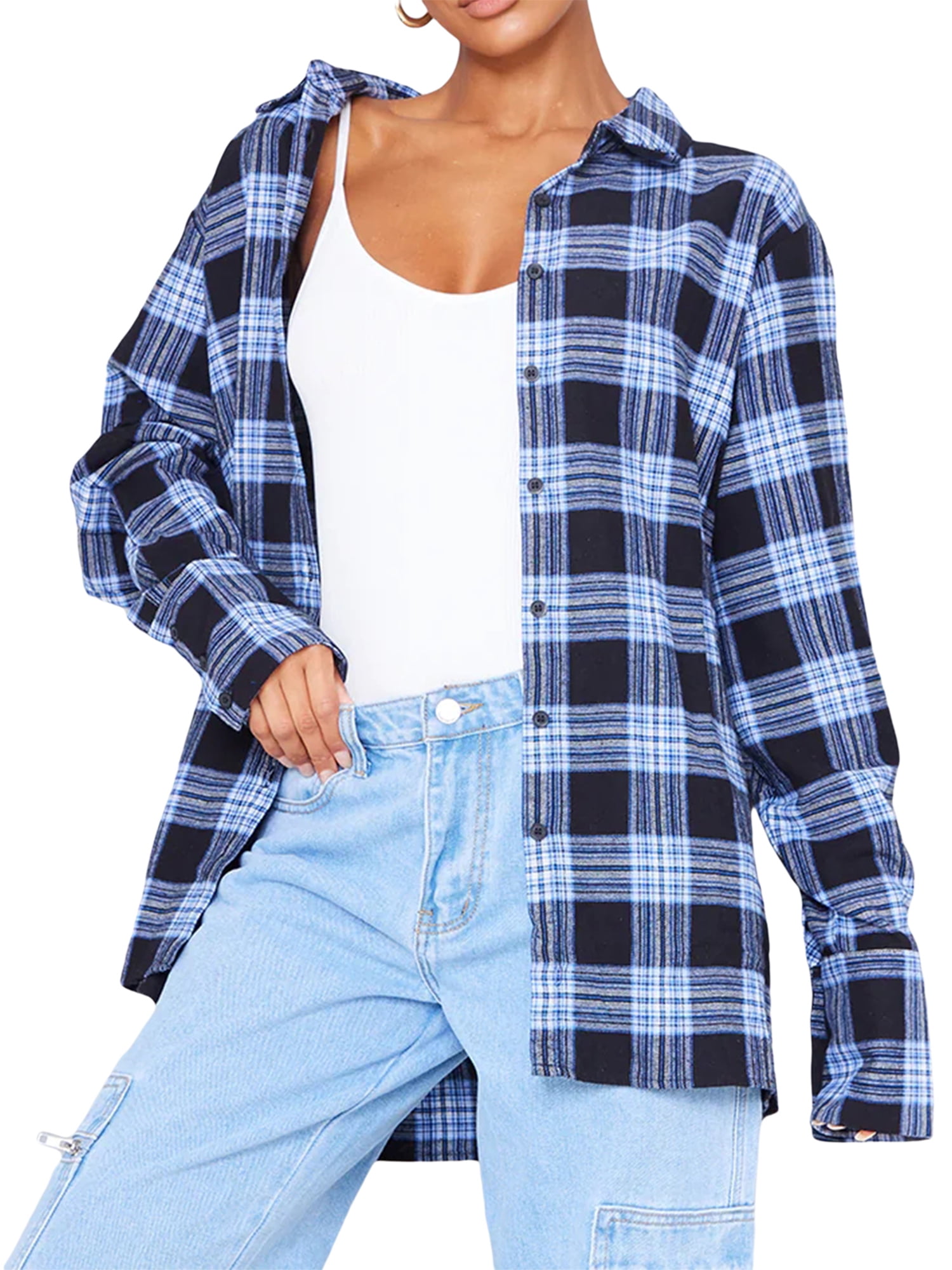 Women Tartan Plaid Turn Down Collar Shirt Long Sleeve Button Down Blouse For Females Walmart Com